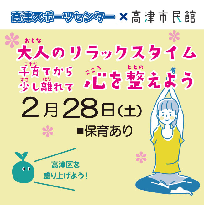 高スポ×市民館「大人のリラックスタイム 子育てから少し離れて心を整えよう」 要事前申込