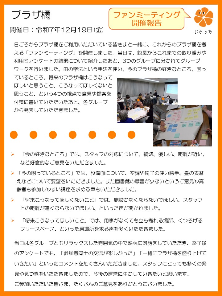 プラザ橘「ファンミーティング」開催報告 申込終了