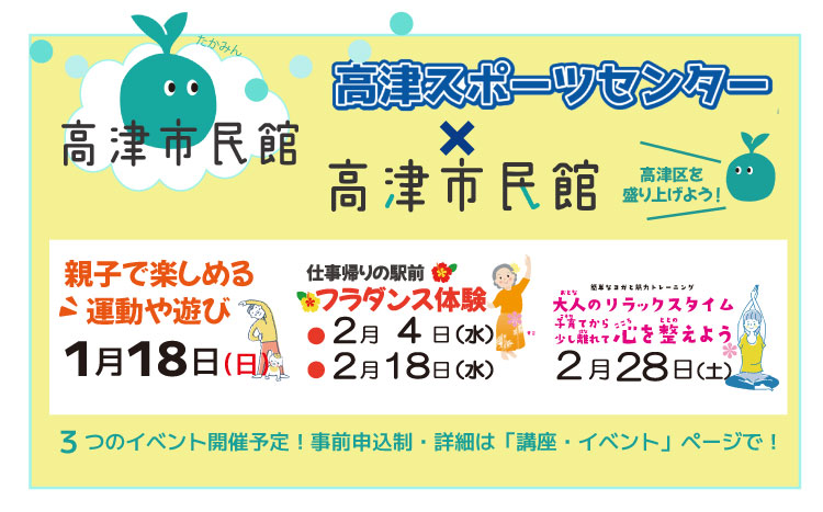 ● NEW ●高津スポーツセンター×高津市民館「親子で楽しめる運動や遊び」の申込受付を開始しました -